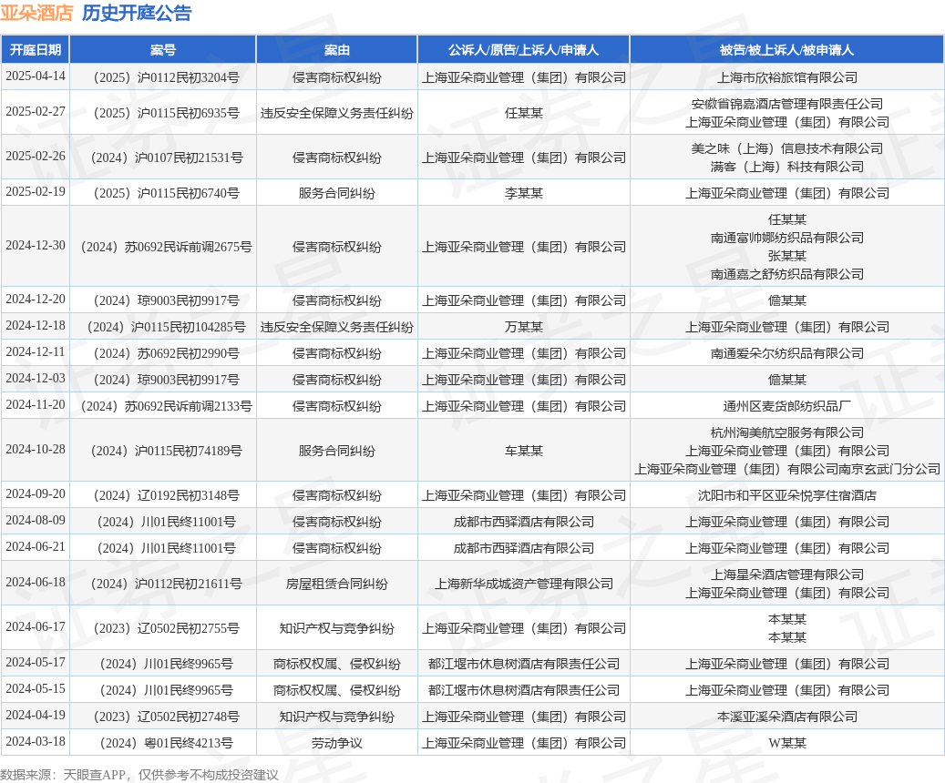 本站消息,根据天眼查APP显示,近日公布了一则上海亚朵商业管理(集团)有限公司作为原告/上诉人的开庭公告,详细内容如下: